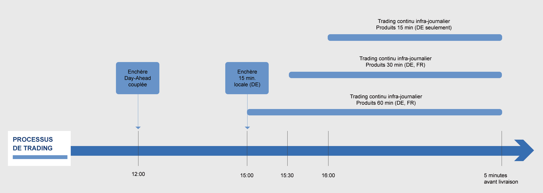 Processus journalier de trading sur les marchés Epex Spot pour la France et l'Allemagne.