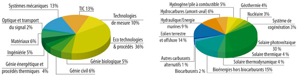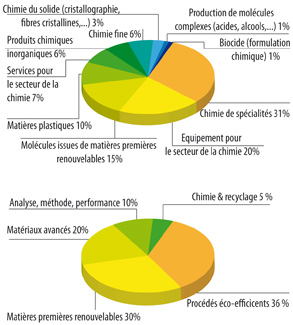 | Chimie : Répartition des projets par secteur (en haut) et par domaine (en bas). |