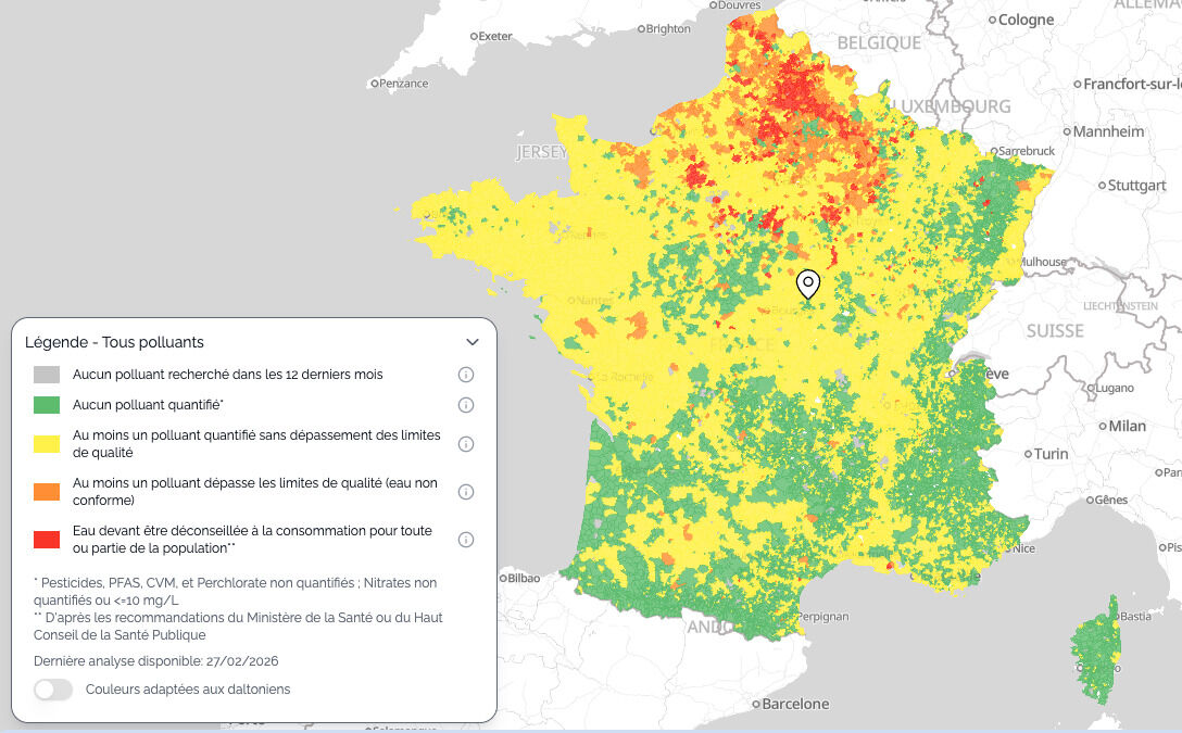 Les chiffres sont préoccupants. « Les pesticides ont été détectés dans 97 % des stations de surveillance de l'eau et leur concentration a dépassé les normes dans près de 20 % d'entre elles, situées en majorité dans les grandes plaines céréalières et industrielles du nord de la France (Bassin parisien, Beauce, Picardie, Champagne…), où les traitements phytosanitaires sont plus fréquents. En 2024, d'après le ministère de la Santé, 19,2 millions de personnes ont été alimentées au moins une fois par de l'eau en situation non conforme vis-à-vis des normes pesticides », rapporte France Nature Environnement (FNE).