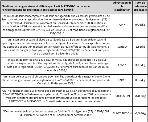 Instaurée par la loi sur l'eau et les milieux aquatiques, la redevance pour pollutions diffuses (RPD) est perçue par les agences et offices de l'eau lors de l'achat de produits phytopharmaceutiques. L'objectif affiché est d'inciter à une diminution de la pollution des milieux. Son assiette repose sur la quantité de substances contenues dans les produits et le taux de taxation appliqué dépend du niveau de danger attribué aux substances.